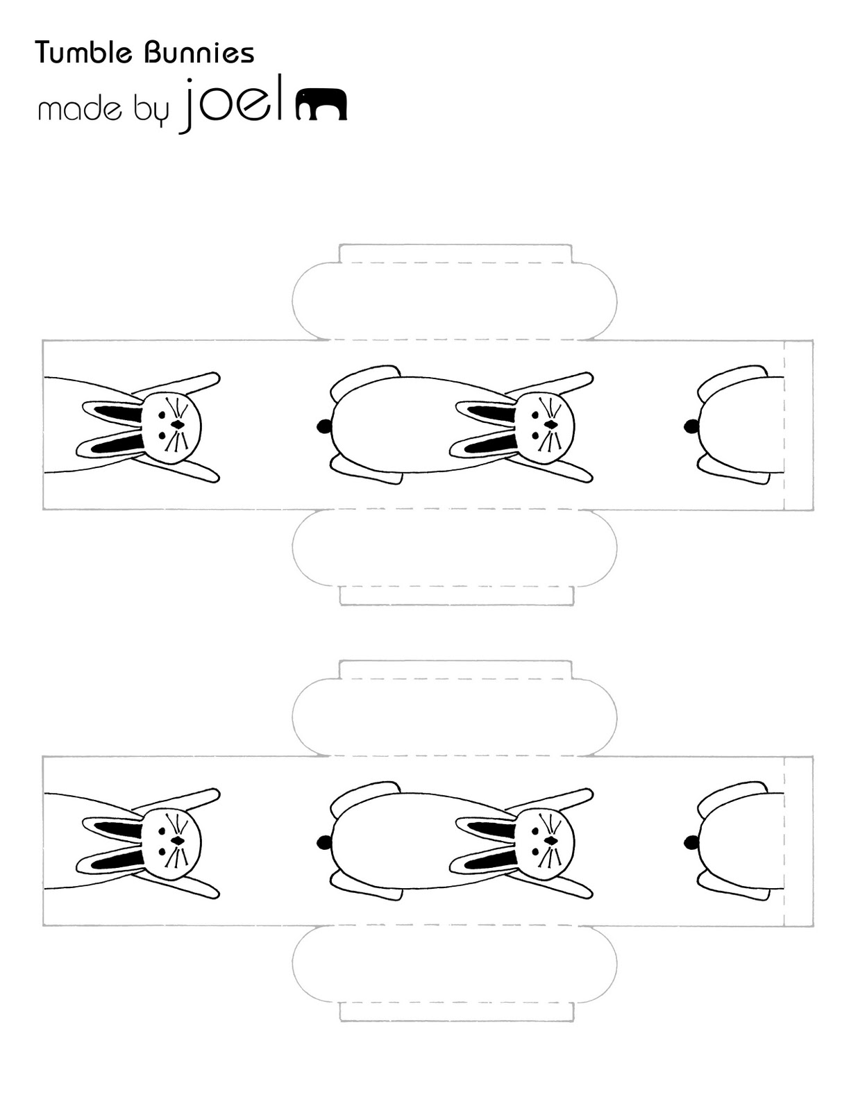 Ehhez szükség lesz egy sablonra. Színezzétek ki a nyuszikákat, majd állítsátok össze őket. Mielőtt teljesen beragasztanátok, tegyetek bele két-három üveggolyót. Ferde felületre helyezve a nyuszók ugrálni fognak. A sima felületen csak kúsznak, a textillel bevont (érdesebb) felületen ugrálnak lefelé a nyuszik. Fergeteges nyúlfuttató versenyt lehet rendezni.
